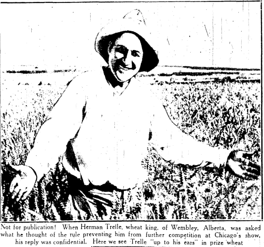 Herman Trelle (1894-1945) won the Alberta amateur heavyweight wrestling championship in 1914 and 1915. He became a grain farmer in 1916, and then went off to serve in the First World War.