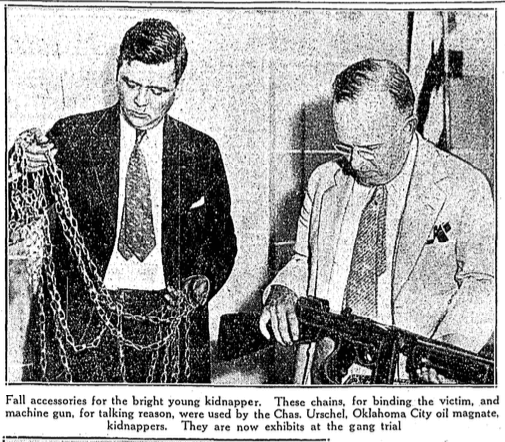 Charles F. Urschel (1890-1970) was an American oil magnate. On July 22 1933, his bridge game was rudely interrupted by George "Machine Gun" Kelly, who kidnapped him and held him for ten days until receiving $200,000 in ransom money.
