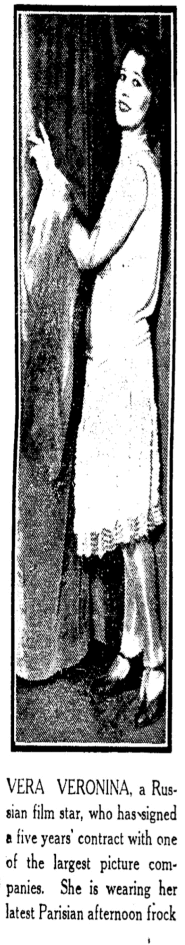Vera Voronina (1904-1942?) fled Russia with her family at the time of the 1917 revolution. She had appeared in films in Austria, Germany, and Britain before coming to America. Her first movie in the United States was The Whirlwind of Youth (1927).