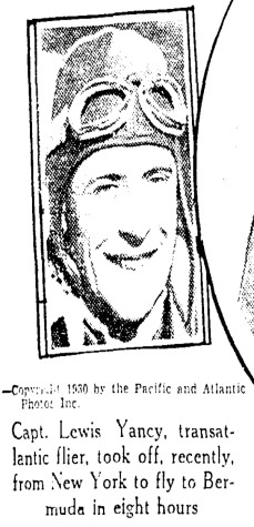 It turned out that Lewis Yancey (1895-1940) was able to fly to Bermuda in about eight and a half hours of flying time, but he and his two crew members had to spend the night at sea partway through the flight after their plane was forced down. Fortunately, the plane was equipped with pontoons. Even more fortunately, the plane was able to take off again.