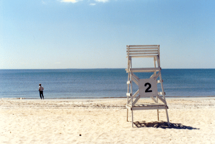 Shorter drive today. Wound up at Rocky Neck State Park in Lyme, Connecticut, as it was the only beachfront area that was not strictly private. (To someone like me, raised in "collectivist" Canada, a private beach seems like a waste. Of course, that may be because I don't own one.) The park is clearly equipped to handle thousands of local sun-worshippers; given that it was midweek and school was still in, it was virtually deserted - only a few bored teenagers and us.
