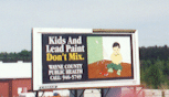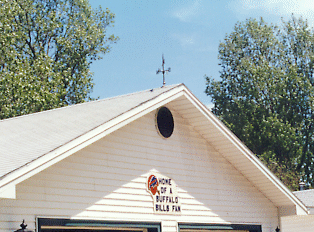 Since we have to reach Buffalo before 2 p.m., we head back out onto the Interstates again. We make good time, but at the cost of a lack of entertaining, picturesque scenery. We spot several dead deer, one empty billboard spray-painted with pro-McVeigh slogans (I couldn't react fast enough to photograph it), and several more official U.S. Army vehicles, all still heading west. ("All right, men! On to Lackawanna!")