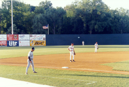 The highlight of the game was Lynx outfielder Hensley "Bam Bam" Meulens. Before the game started, Bam Bam spotted a gap-toothed small child in the stands, and asked him whether he had brought his glove tonight. Two innings later, he tossed the kid an autographed baseball. He also tossed autographed baseballs (pebbles from Bam Bam?) to two young women sitting in the front row; they seemed willing to be his dates for the evening, if you get my drift.