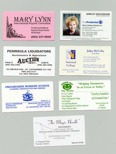 Business cards from a display case in St. Catharines. Please patronize these establishments. |
